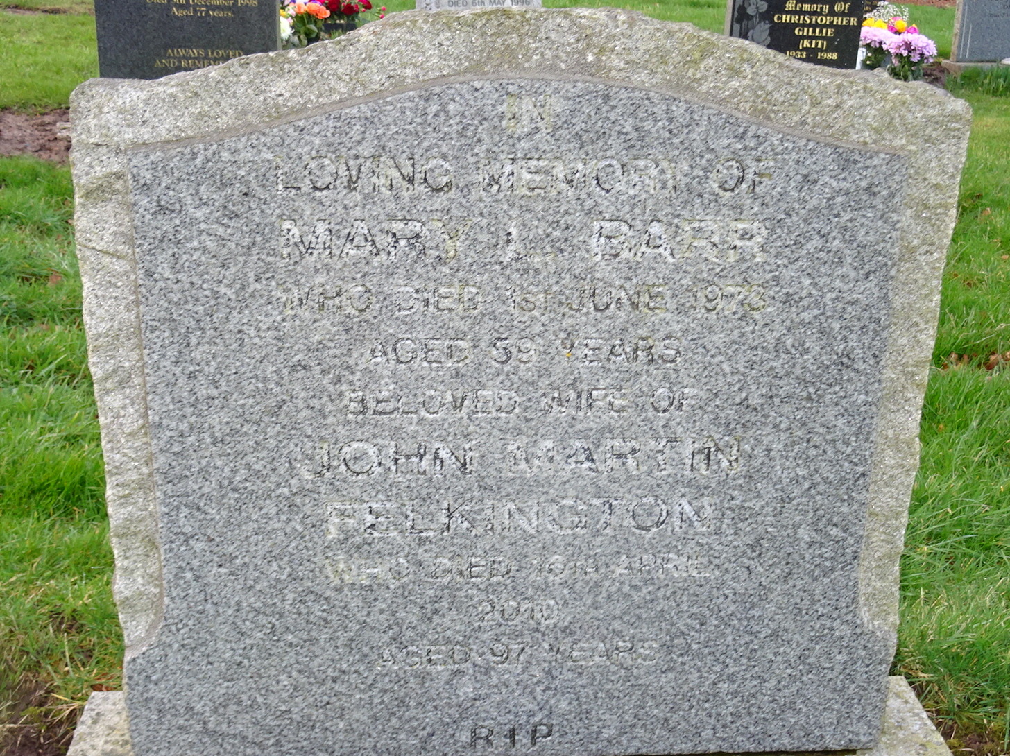 Beloved wife of JOHN MARTIN Felkington who died 6th April 2010 aged 97 years.