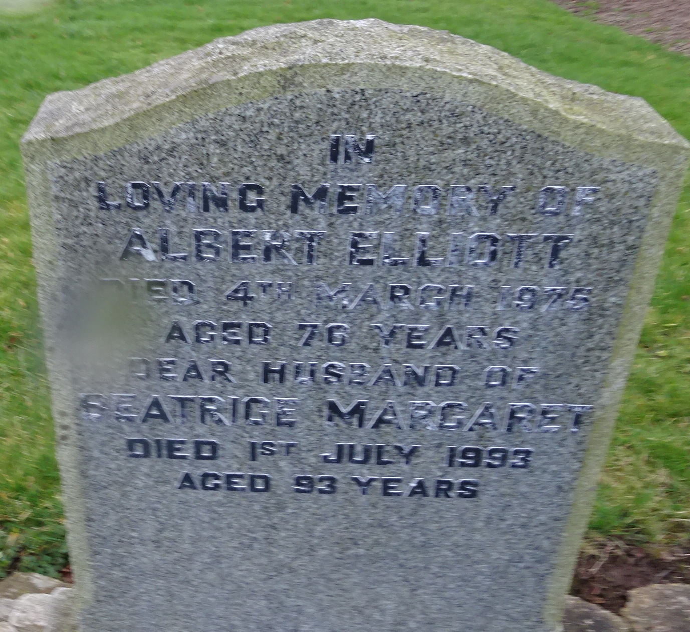 In loving memory of ALBERT ELLIOTT died 4th March 1975 aged 76 years.