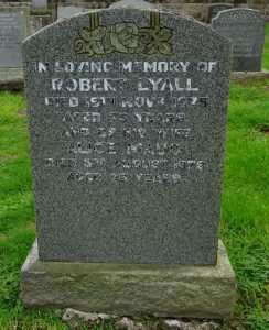 In Loving Memory of ROBERT LYALL, died 19th Novr. 1975 aged 76 years and of his wife ALICE MAUD, died 3rd August 1979 aged 76 years.