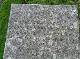 Here lies the remains of WILLIAM GREY late of Kimmerston who died 16 March 1792 in the 40th year of his age.